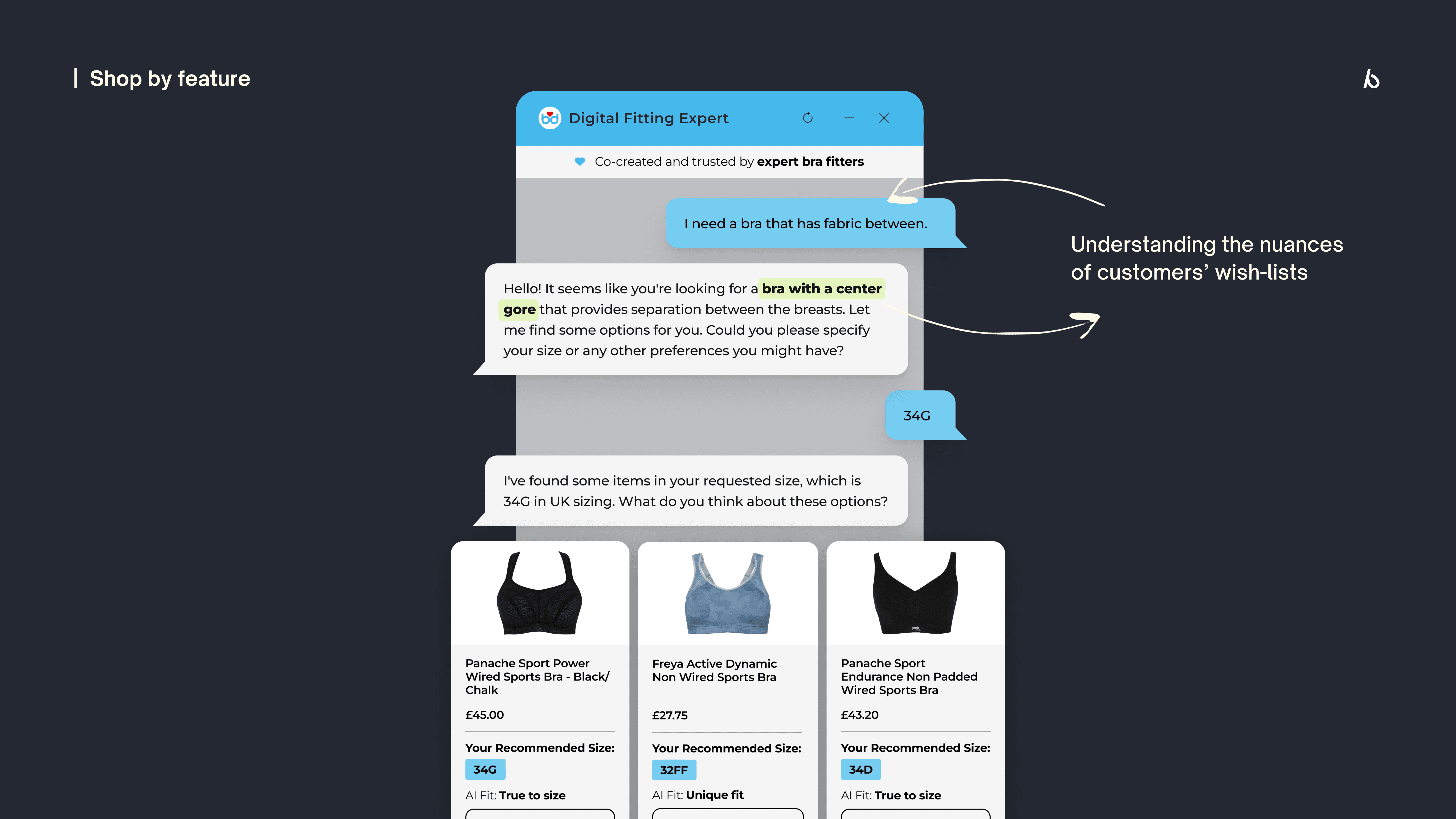 With Brarista, Boobydoo can now extend that support online. By combining their unrivalled fitting expertise with our AI technology, we are making expert guidance instantly available, 24/7. Customers shopping on Boobydoo’s site can access tailored, reliable advice in seconds, ensuring they find their correctly-fitted sports bra every time.