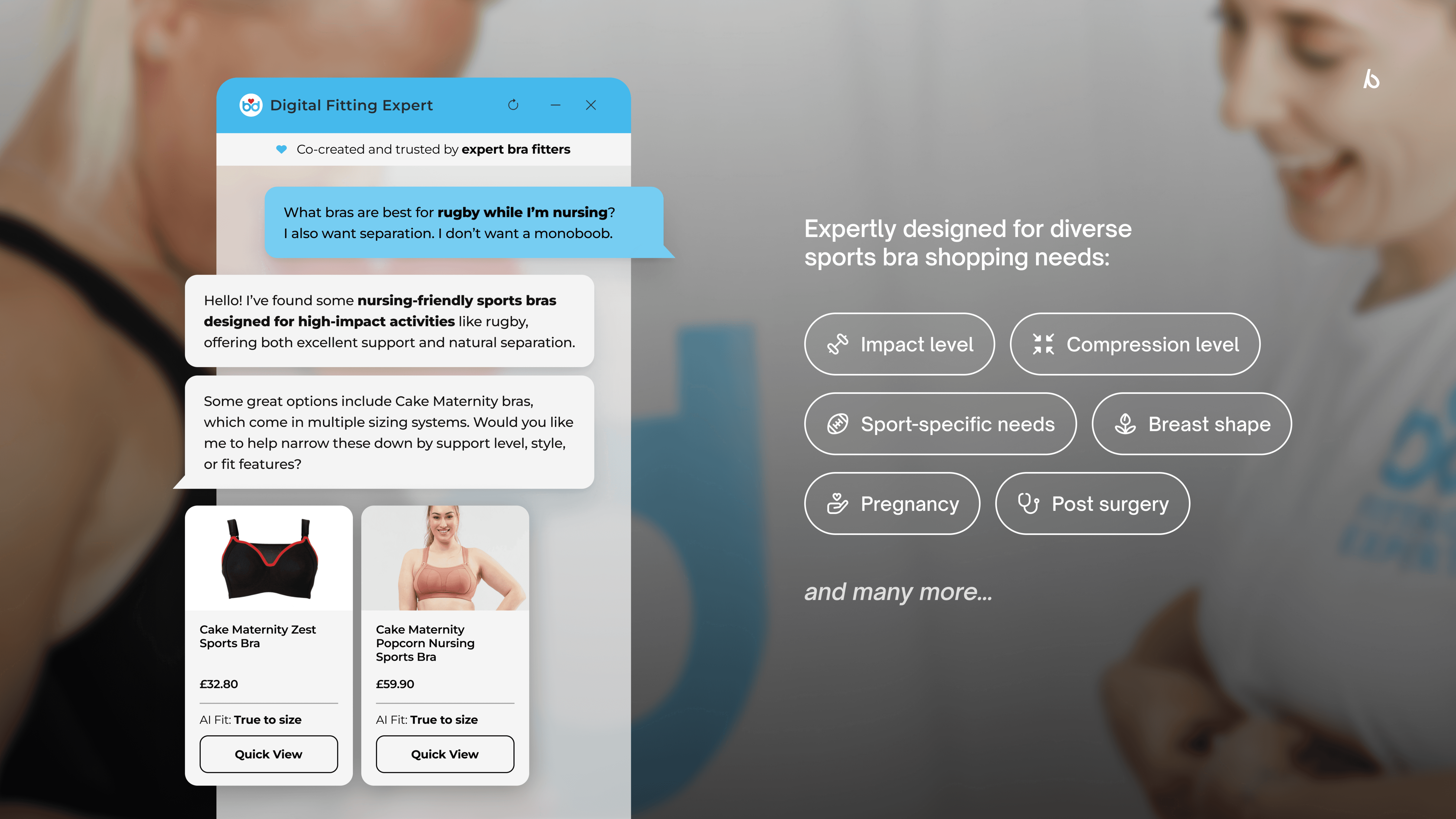 As Charly Rhodes, Managing Director at Boobydoo, explains: “Partnering with Brarista allows us to take this to the next level, combining our human expertise with their scalable AI technology. This means our customers can now get instant, accurate fitting advice at any time, breaking down another barrier to participating in the sports they love.”